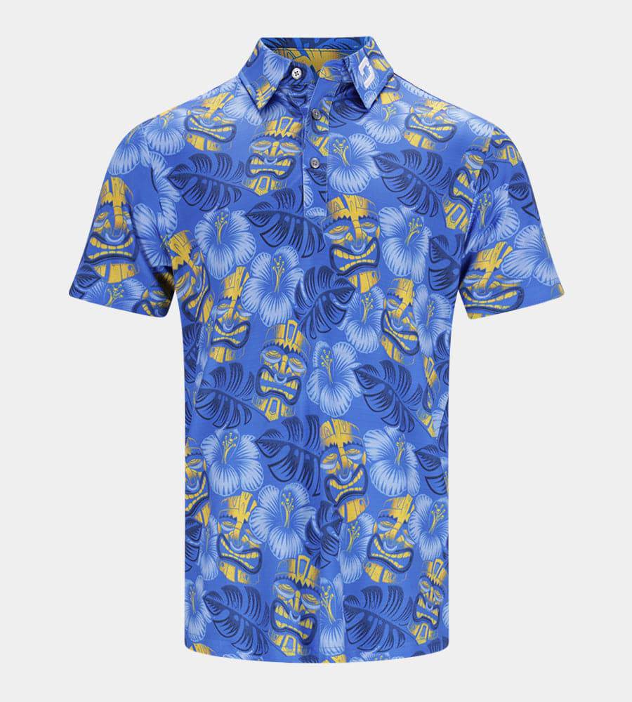 Gefertigt mit der Finesse eines Tiki-Handwerkers und der Präzision eines Golfprofis ist dieses Shirt ein modisches Statement für ein Hole-in-One. Seine leuchtenden Farben und Tiki-inspirierten Prints werden Sie auf dem Fairway beneiden, und es ist so bequem, dass Sie sich fühlen, als würden Sie eine hawaiianische Brise tragen.